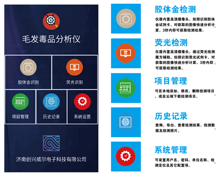 通過(guò)手機(jī)攝像頭對(duì)檢測(cè)試劑卡進(jìn)行拍照,對(duì)獲取的圖像快速分析計(jì)算,3秒內(nèi)即可獲取檢測(cè)結(jié)果,并可保存檢測(cè)數(shù)據(jù)、照片及圖譜。支持單聯(lián)卡、二聯(lián)卡、三聯(lián)卡等多種檢測(cè)卡類型,具有膠體金檢測(cè)、熒光檢測(cè)、項(xiàng)目管理、歷史記錄、系統(tǒng)管理5個(gè)功能模塊。